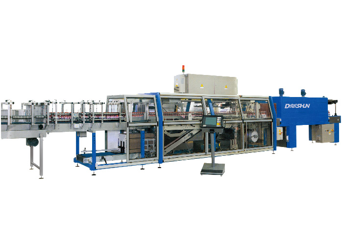 獨(dú)特的薄膜放卷裝置及薄膜恒張力輸送,薄膜瞬時(shí)切斷,自動(dòng)搭接裹膜方式,收縮包裝后強(qiáng)度更高。