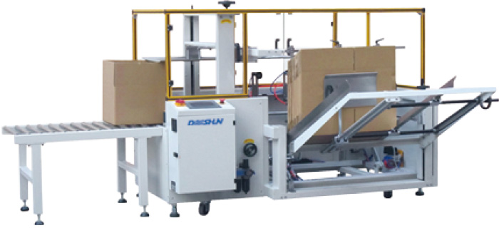 開箱機(jī)能對送入的紙板形紙箱自動完成開箱、成形、下底折合蓋箱,并現(xiàn)時完成下部分膠帶粘貼即紙板的箱板自動打開,箱子底部按一定程序折合,并用膠帶密封后輸送給裝箱機(jī)的專用設(shè)備。自動開箱機(jī)是大批量紙箱自動開箱、自動折合下蓋、自動密封下底膠帶的流水線設(shè)備,本機(jī)采用PLC +顯示屏控制,大大方便操作、管理、減少生產(chǎn)人員和勞動強(qiáng)度,是自動化規(guī)模生產(chǎn)必不可少的設(shè)備。操作方便,降低包裝成本。可配熱熔膠機(jī)封箱.